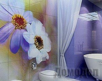 Ванные комнаты также декорируют с помощью фотостекла. Им украшают стены, а также делают перегородки для душа. Так как в ванной повышена сырость, способ изготовления стекла здесь другой, чем в кухне. Для ванн используют триплекс, который представляет собой две стеклянные поверхности, между которыми вкладывается изображение, тщательно спаянные. Ширина его должна быть не менее 6 мм. Стекла крепят при помощи шурупов или клея. Перегородки изготавливают из триплекса шириной 8-9 мм, так как они более подвержены риску разрушения.