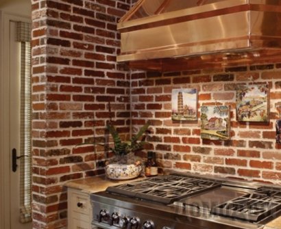 Еще один способ декорирования стен под кирпич. Такие изделия нельзя изготовить самому, их можно купить только в строительных магазинах. Сделан кирпич из глины, обожженной на высокой температуре. Его легко положить самому, используя клей, который прилагается в комплекте.