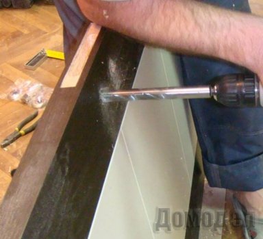 Замерить толщину замка, взять перо этого диаметра и по отмеченной центральной линии, просверлить ряд отверстий.