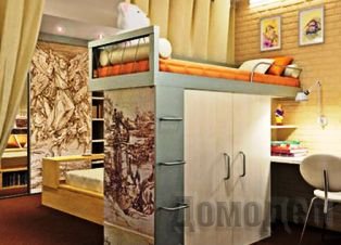 Решением проблемы здесь будет гармоничное зонирование комнаты. Условно помещение делят на территорию для ребенка и на «взрослый» участок. Здесь не требуется проводить кардинальную перепланировку или масштабный ремонт. Главное – установка предметов, позволяющих визуально разделить пространство комнаты.