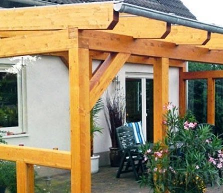При постройке летней веранды собственными ручками, возможно, определить односкатную кровлю и совершить её наиболее отлогой, нежели кровля здания. В случае если для кровли веранды и здания вы станете применять единственный и тот же строй источника, то в таком случае в полном, строение станет смотреться более интересно.