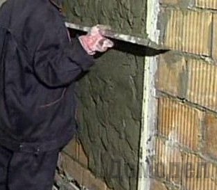Далее следует приготовить цементно-песчаный раствор посредством смешивания одной части цемента с тремя частями песка. Нанесение раствора осуществляется методом намазывания или набрызгивания. Во втором случае необходимо, чтобы смесь была жидкой. Это обеспечит заполнение всех пор и трещин на поверхности, а также ровную укладку штукатурки.