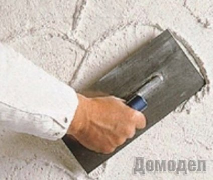 При набрасывании раствор наносится при помощи лопатки резкими движениями кисти. Нанесенный слой разравнивается правилом, которое опирается на подготовленные маяки.