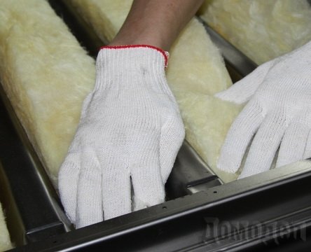 - Согласно замерам из утеплительного материала вырезают блоки и заполняют ими все пространство внутри двери. К стенкам двери эти блоки приклеивают.