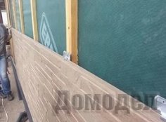 Следующий этап заключается в монтаже утеплителя. В полость между рейками на обрешеченной стене, укладывается утеплитель, защищенный пленкой гидроизоляционного вида, это, прежде всего, необходимо для того, чтобы вода не смогла попасть в промежуток между поверхностью строения и панелью. Не лишним станет и обработка стен вокруг окон и дверей.