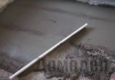 Бетон заливается и выравнивается. Стяжка, должна залить все уровни. В самой высокой точке пола, стяжка должна составлять не меньше двух сантиметров, но не больше восьми.