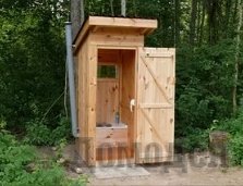 Обычно туалет – это неотапливаемое здание, поэтому нет смысла делать теплым, можно выбирать практически любой материал для строительства, но лидером строительных материалов для строительства туалета является дерево. Пол туалета должен быть жестким и устойчивым, ну вы догадались почему. Крыша обычная плоская с небольшим наклоном для того, чтобы сбегала вода. Размер кабинки туалета как правило 1 метр на 1.3 метра. В туалете можно устанавливать унитаз с водяным затвором (если есть вода), либо простое отверстие. Самое важно в туалете – это устройство вытяжной вентиляции для выветривания неприятных запахов. Желательно установка трубы с выносом хотя бы метр для создания тяги и отверстия для забора воздуха. Как правило, такой туалет может заполняться долгие годы и при наличии хорошего дренажа будет наполнятся десятками лет.