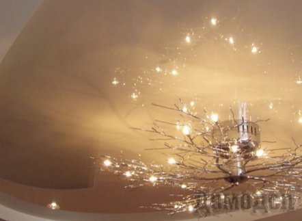 Наверное, самым сильным дизайнерским ходом является натяжное полотно с фотопечатью или системой «звездного неба». Установка подобных конструкций является кропотливой, трудоемкой и требующей высокой квалификации работа, а эффект будет просто сногсшибательным. Единственным недостатком этого решения: потолок будет стоить очень дорого, но эффект того стоит.