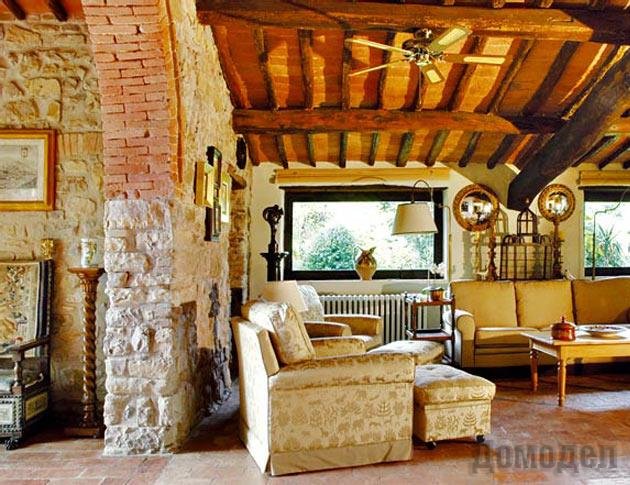 Дешевым итальянский стиль не назовешь, но главным его принципом остается простота и единение с природой. Одним из признаков итальянского стиля можно назвать отделку потолка массивными деревянными балками. Они не используются как несущие конструкции, а только как декоративные.