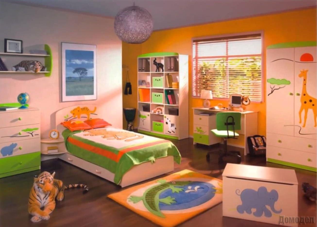✔ В интерьере такой комнаты должно отсутствовать однообразие. Он должен быть красочным и ярким. В нем должны присутствовать предметы самой причудливой и разнообразной формы, в которых присутствуют актуальные текстуры и познавательные цвета. Однообразие в интерьере нежелательно еще и потому что ребятишки длительное время не могут сконцентрироваться на определенном объекте. Стены лучше всего будет раскрасить в разные цвета.