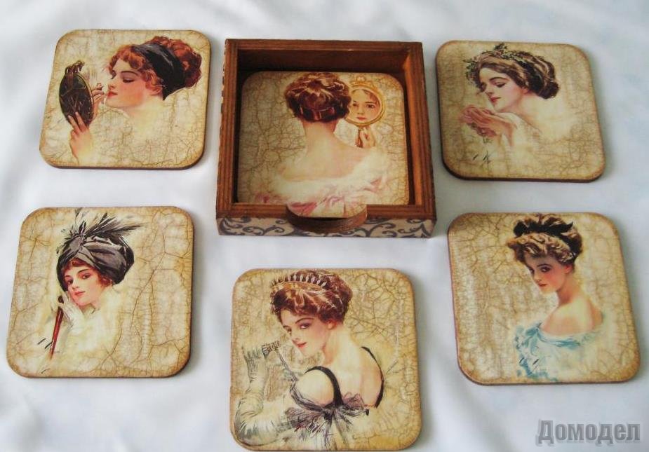 • Покрытие акриловым лаком. Потребуется несколько слоев, каждый из которых просушивается час-полтора. При желании можно воспользоваться специальным запекаемым лаком для стекла. В этом случае просушивать подставку можно под горячим феном. Если будет использоваться одна сторона изделия, то можно отказаться от облагораживания обратной стороны рисунком. Достаточно покрыть ее только акриловым лаком.