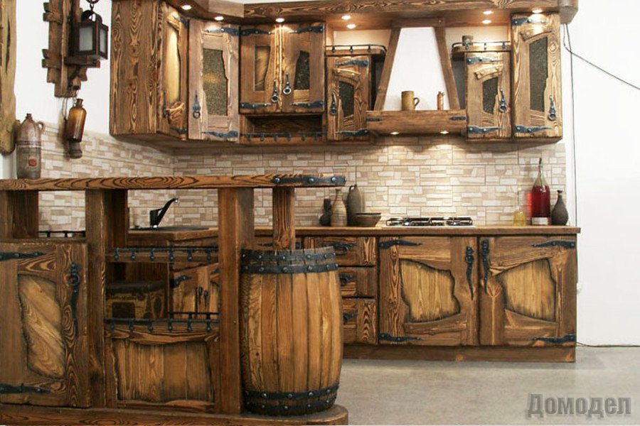 Можно часть стен отделать деревянными панелями или мозаикой. Хотя кирпичная кладка не противоречит специфике направления, в маленьких кухоньках она только утяжелит пространство. Поэтому с отделкой кирпичом надо быть осторожней. Предпочтительней, без сомнения, использовать или керамогранит, или декоративную штукатурку. Плитка подойдёт расписная.