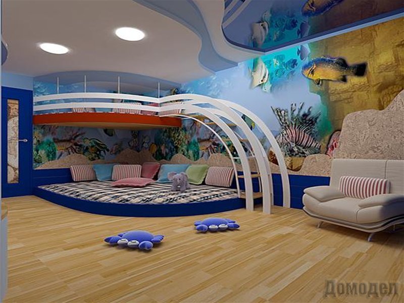 ✔И девочкам и мальчикам нравятся оборудованные в детской «чердаки», которыми могут стать кроватка или игровое место, визуально расширяющие пространство.