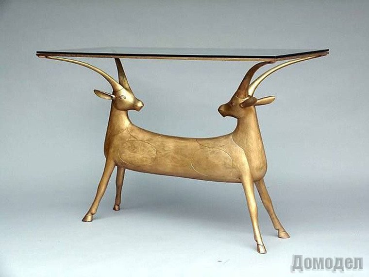 Скульптурная мебель условно может быть разделена на зооморфную и антропоморфную, то есть на мебельные скульптуры животных и человека соответственно.