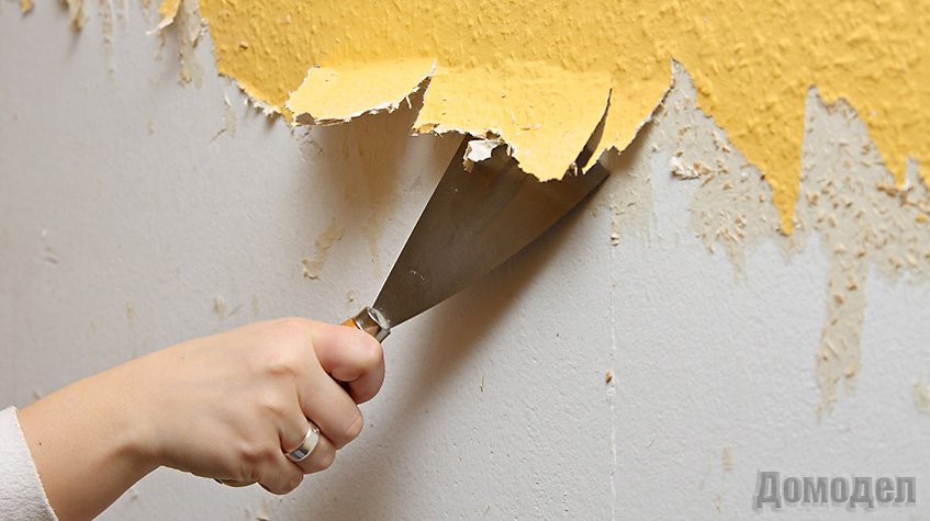 Следует помнить, что перед тем как клеить новые обои, нужно обязательно удалить со стены старые обои, причём обязательно полностью. Обычно, обои снимаются легко и в сухом виде, но если по какой-то причине у вас это сделать не получилось, то намочите старые обои водой и оставьте на несколько минут, после чего удалите обои с поверхности, для этого вы можете использовать тонкий шпатель, чтобы поддевать края старых обоев было легче.
