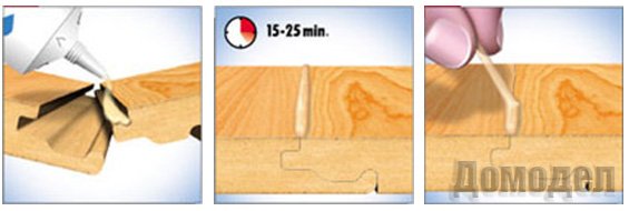 Этот герметик очень эластичен и при этом устойчив к истиранию, за счет чего достигается его долговечность. Одного тюбика герметика емкостью 110 миллилитров хватает на 8-10 квадратных метров ламината. Герметик надо нанести шпателем на стыки ламината, излишки можно не стирать, их проще удалить после высыхания с помощью ножа и шпателя. Герметик достаточно быстро высыхает, поэтому расходовать его нужно быстро. Время высыхания составляет примерно 20-30 минут. После этого надо удалить излишки герметика, и спокойно пользоваться ламинатом, который теперь надежно защищен от влаги.