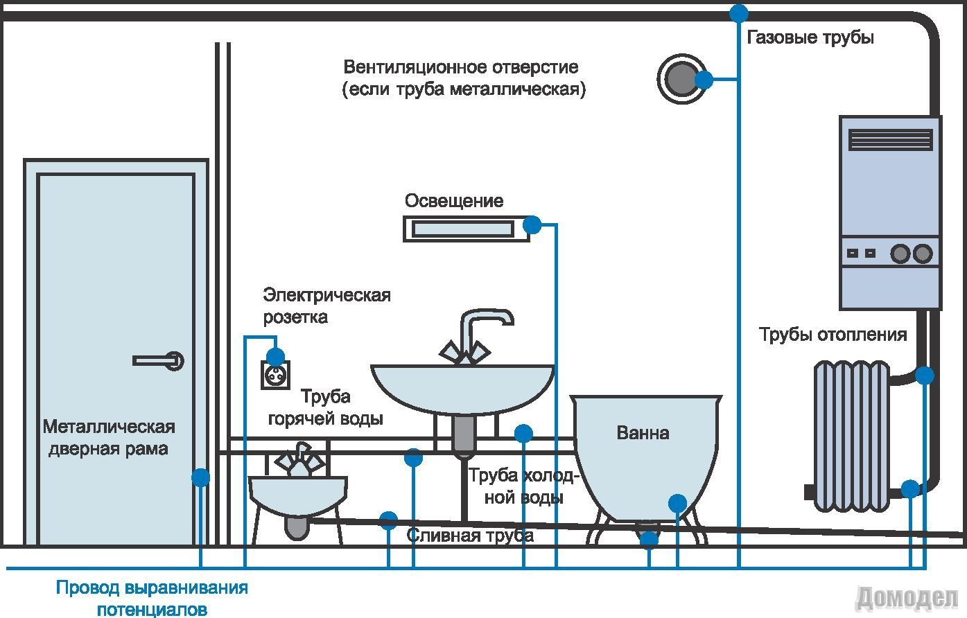 Если же розетки в ванной комнате предусмотрены изначально, то это значит электропроводка приспособлена под модернизации и ее можно смело использовать в своих целях.