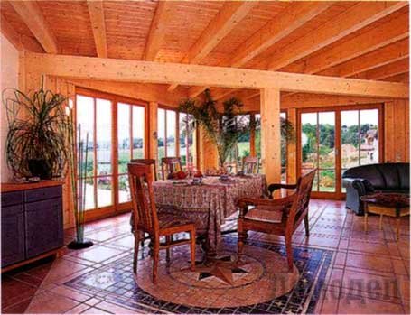 Все жилые комнаты дома ориентированы на юг, а подсобные — на север.